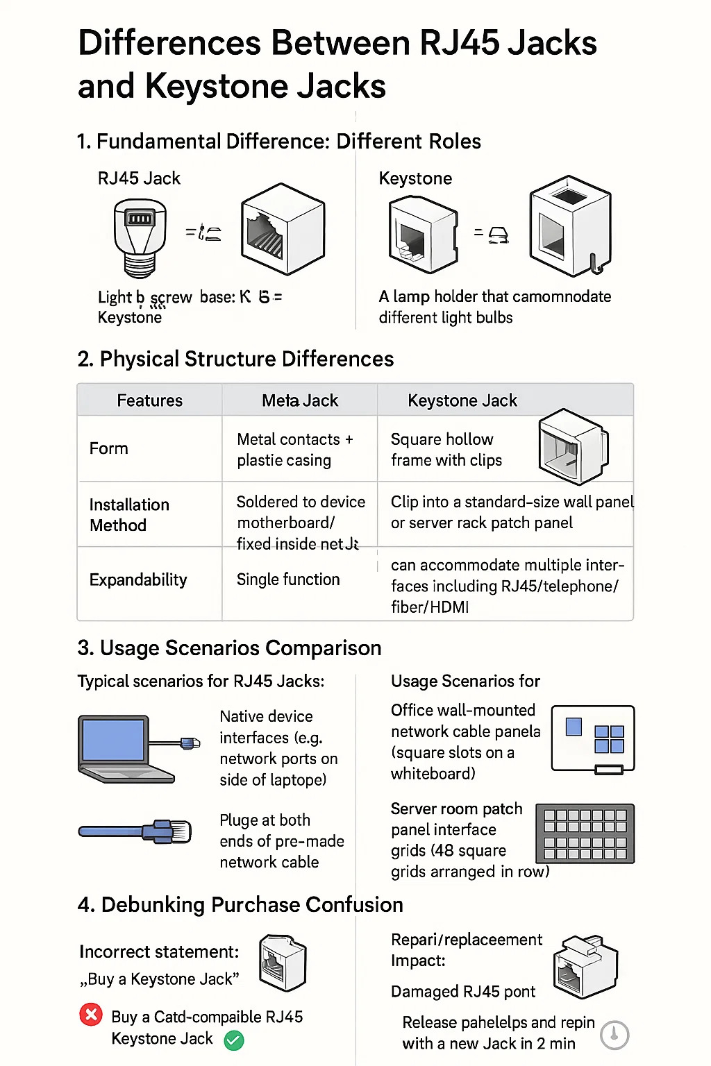 Oikea väite: "Osta Cat6-yhteensopiva RJ45 Keystone Jack" ** (Tarkoittaa Keystonen alustaan asennettua RJ45-komponenttia)